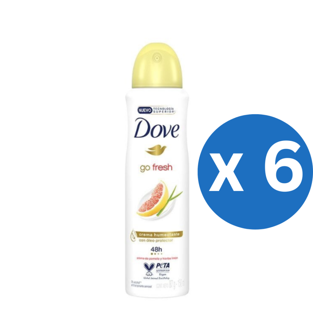 Pachet 6 x Dove spray deodorant, Grapefruit si Lemongrass, 150 ml