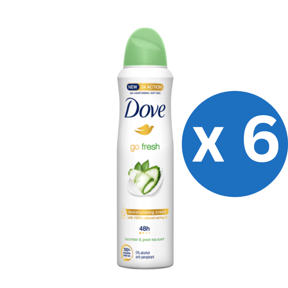 Pachet 6 x Dove spray deodorant, Castravete si Ceai verde, 150 ml